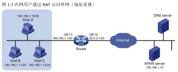 这个是时候HostB访问外 www server 网关router路由器怎么知道hostB请求的地址192.168.1.10 是到外网的还是到内网的192.168.1.10呢?