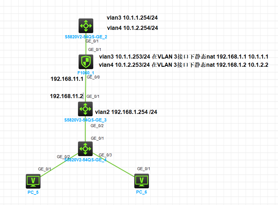 在F1060 vlan接口上做的nat不能访问 10.1.1.254和10.1.2.254