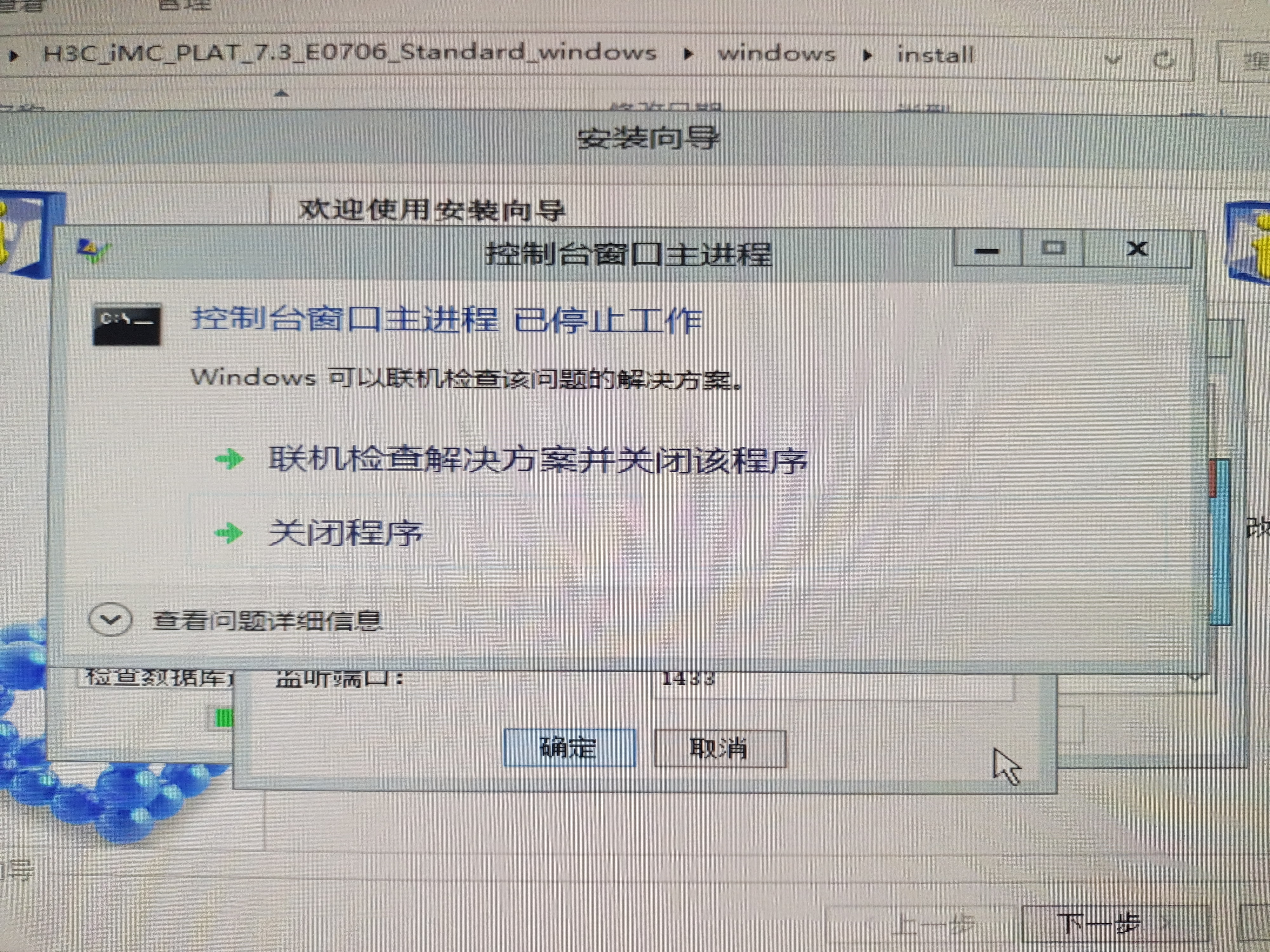 2012 R2装了sql server2017的时候部署IMC E0706弹出这两个是什么问题啊?点了关闭后数据库也连接不上,会不会对数据库的连接及平台安装有什么影响?
