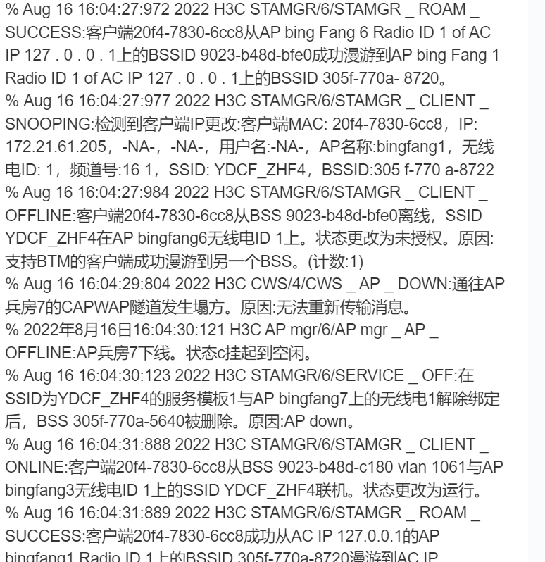 · # 在AC上通过display wlan service-template命令可以查看BSS切换管理功能处于开启状态。