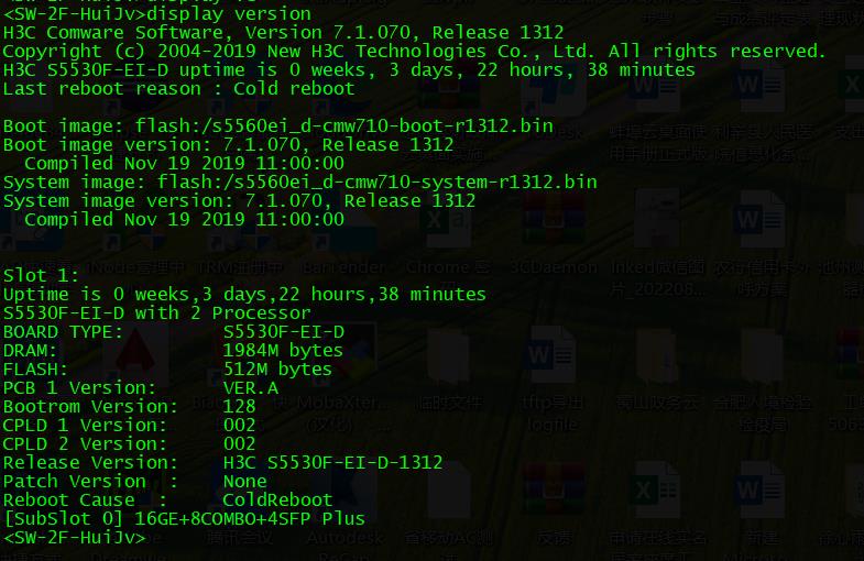 五台交换机运行时间都是三天、重启动原因是冷启动