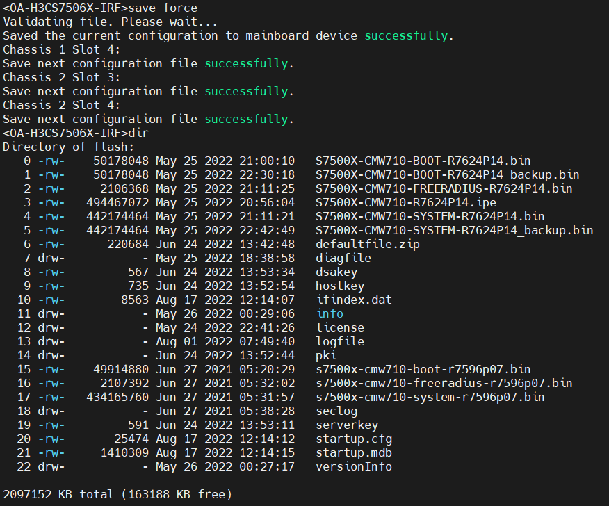 7506X两台做IRF,保存配置较慢,是否正常?是否是flash空间少导致的?