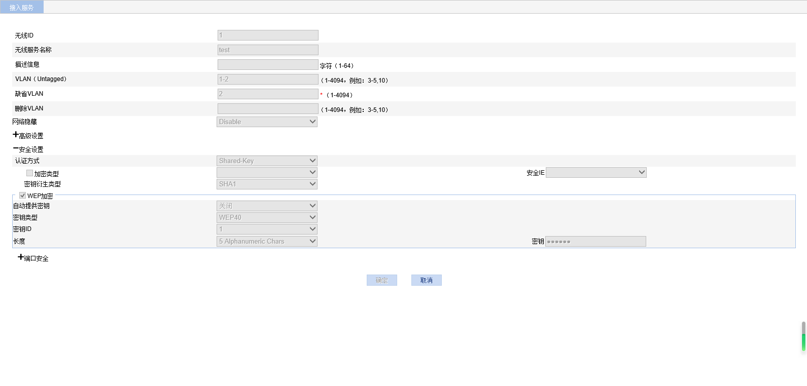 [WAP722E-wlan-st-1]dis current-configuration # version 5.20, Release 1507P04 # sysname WAP722E # domain default enable system # telnet server enable # port-security enable # password-recovery enable # undo attack-defense tcp fragment enable # acl number 3000 rule 0 permit ip # vlan 1 # vlan 2 # domain system access-limit disable state active idle-cut disable self-service-url disable # dhcp server ip-pool 0 network 192.168.1.0 mask 255.255.255.0 gateway-list 192.168.1.254 dns-list 202.96.128.86 # user-group system group-attribute allow-guest # local-user admin password cipher $c$3$AmKij37ldbjqhWy3c60NThu4h4cy1/OTPA3Q6RA= authorization-attribute level 3 service-type telnet service-type web # wlan rrm dot11a mandatory-rate 54 dot11a supported-rate 9 18 24 36 48 dot11a disabled-rate 6 12 dot11b mandatory-rate 5.5 dot11b supported-rate 11 dot11b disabled-rate 1 2 dot11g mandatory-rate 11 12 dot11g supported-rate 6 9 18 24 36 48 54 dot11g disabled-rate 1 2 5.5 # wlan service-template 1 crypto ssid test undo authentication-method open-system authentication-method shared-key cipher-suite wep40 wep default-key 1 wep40 pass-phrase cipher $c$3$KPXbFGIGxIis5B3oEWg7YfIwA+6aTStW service-template enable # cwmp undo cwmp enable # interface NULL0 # interface Vlan-interface1 ip address 176.16.10.20 255.255.255.0 nat outbound 3000 # interface Vlan-interface2 ip address 192.168.1.254 255.255.255.0 # interface GigabitEthernet1/0/1 # interface GigabitEthernet1/0/2 # interface WLAN-BSS32 port link-type hybrid port hybrid vlan 1 to 2 untagged port hybrid pvid vlan 2 # interface WLAN-BSS33 port link-type hybrid port hybrid vlan 1 to 2 untagged port hybrid pvid vlan 2 # interface WLAN-Radio1/0/1 channel 153 service-template 1 interface wlan-bss 32 # interface WLAN-Radio1/0/2 service-template 1 interface wlan-bss 33 # ip route-static 0.0.0.0 0.0.0.0 176.16.10.254 # dhcp enable #