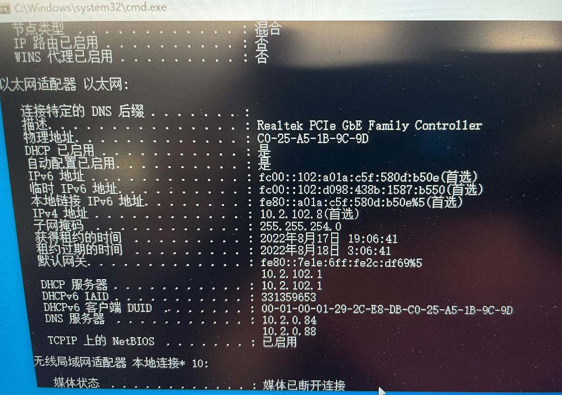 终端可以正常获取到ipv4的地址和dns信息,并正常可用。