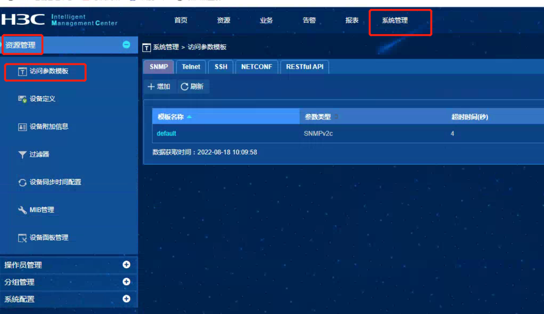 系统管理--资源管理--访问参数模板