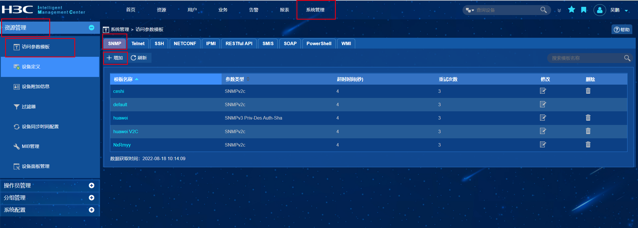 IMC的snmp模板在哪里配置?v3的模板不能增加