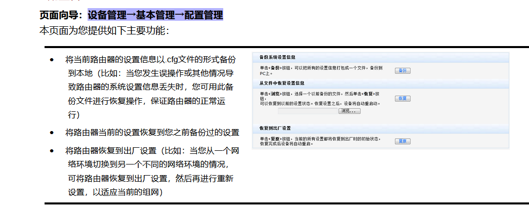在 设备管理→基本管理→配置管理恢复
