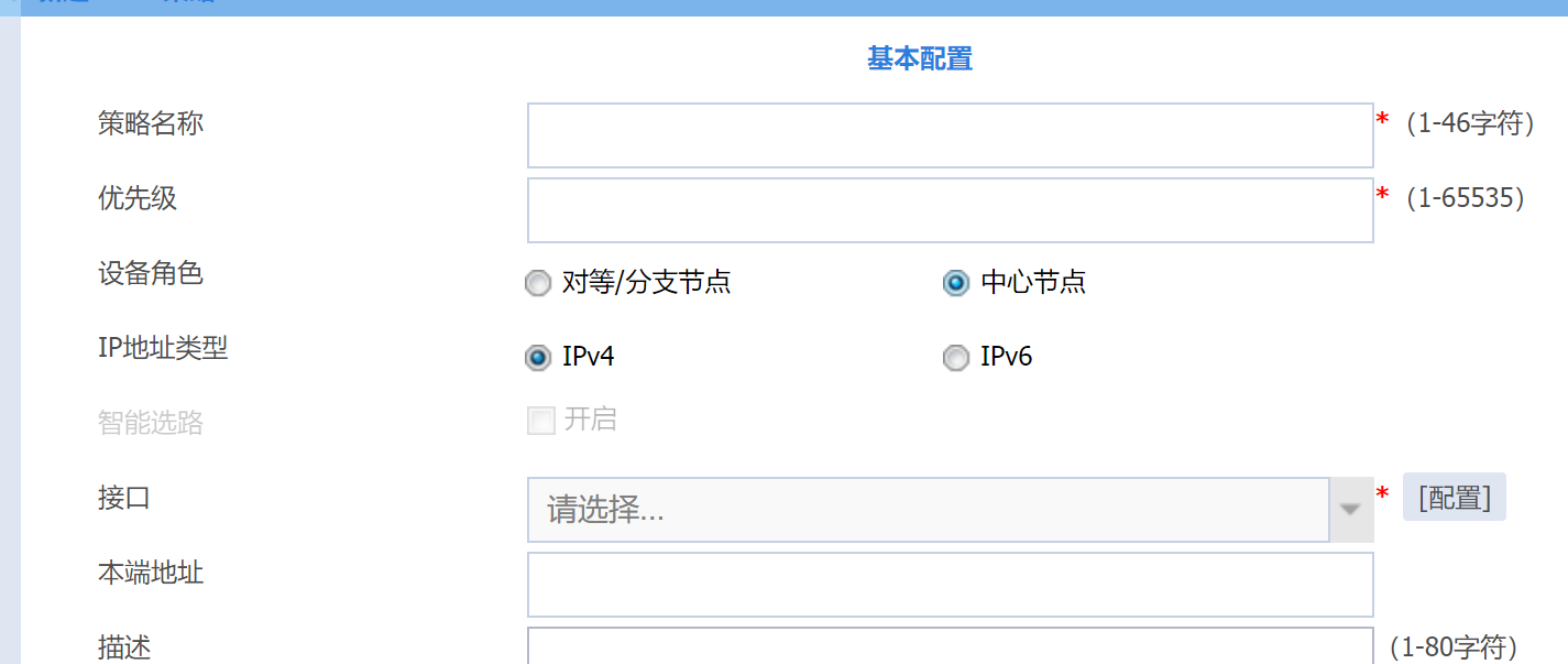 中心节点一般就是野蛮模式,这个对端信息填0.0.0.0,或者不填写都可以