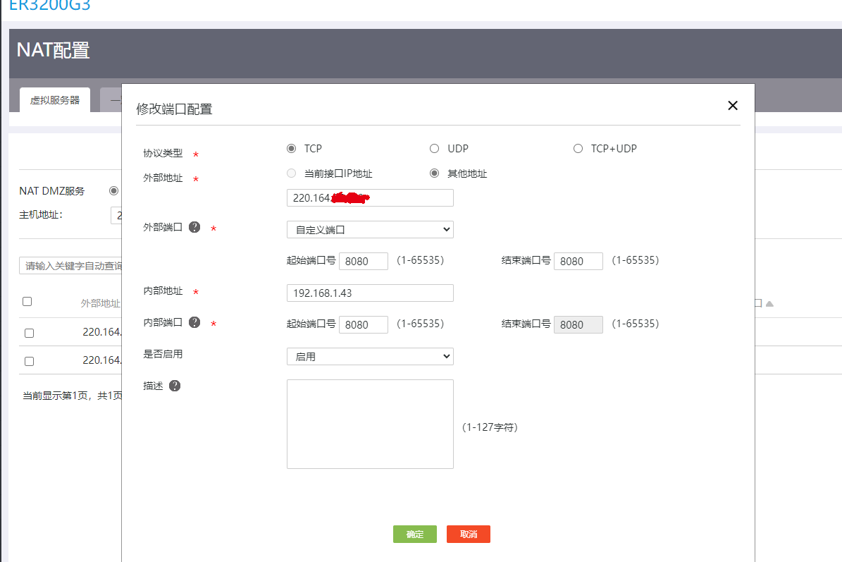华三ER3200G3 在公司做好端口映射,在公司网络输入映射好的外网IP地址+端口能正常访问,在家和其他外网就无法访问。