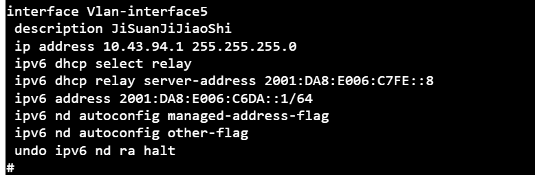 配置大概为在原有的VLAN上IPV4基础上配置了IPV6做双栈接入,IPV6配置了中继,并通过远端DDI设备分配地址,目前问题是在同一个局点下 5个VLAN 相同配置下 有俩个VLAN内终端请求IPV6异常,高达200万次终端,直接把DDI设备给整挂了,在我们的交换机上有什么规避方式么,或者是不是配置有问题,请各位帮忙看下,下面上图