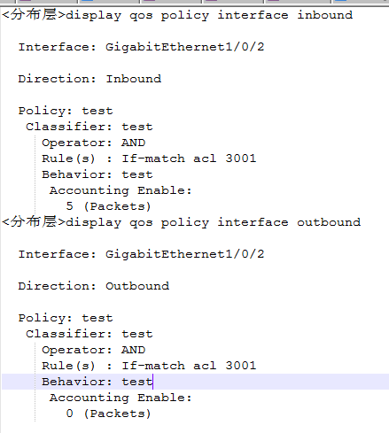 在分布层交换机上做了qos,用于统计分布层到PC机的报文,发现以分布层交换机的地址为源地址去pingPC机时,仅能看到分布层交换机进向的报文统计,出向的没有;而如果用分布层交换机上联的路由器去ping,则两个方向都有。