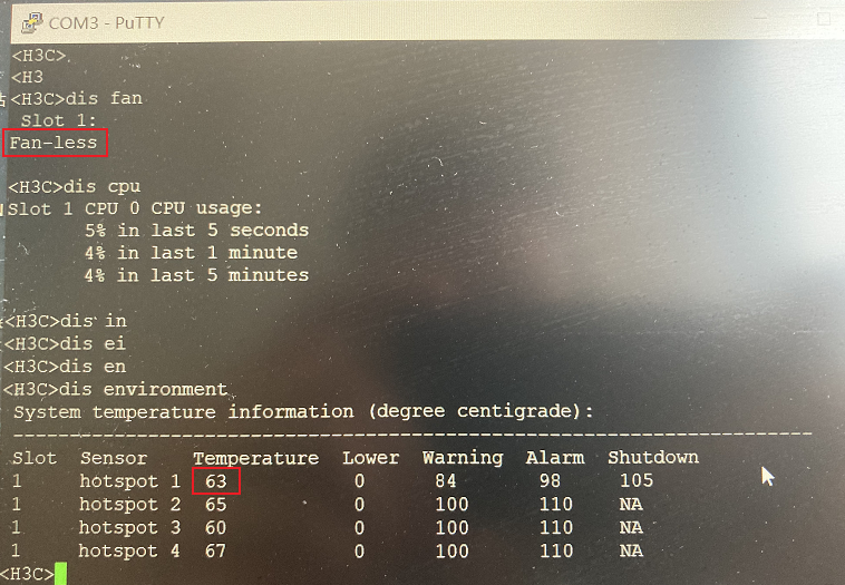 V7平台的无风扇的交换机使用display fan查看风扇状态显示为fan-less是正常的,这个显示和平台有关,不区分具体的产品型号,和版本无关。