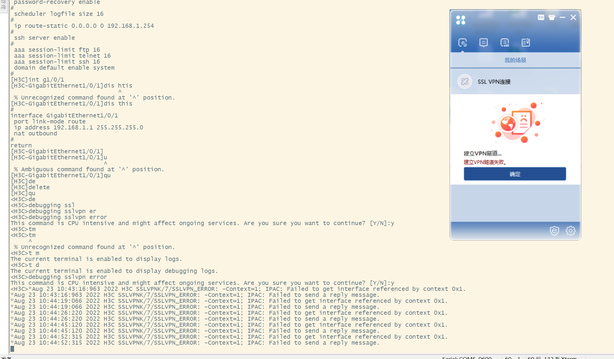 这个ssl vpn的告警信息是什么意思?VPN一直建立不起来