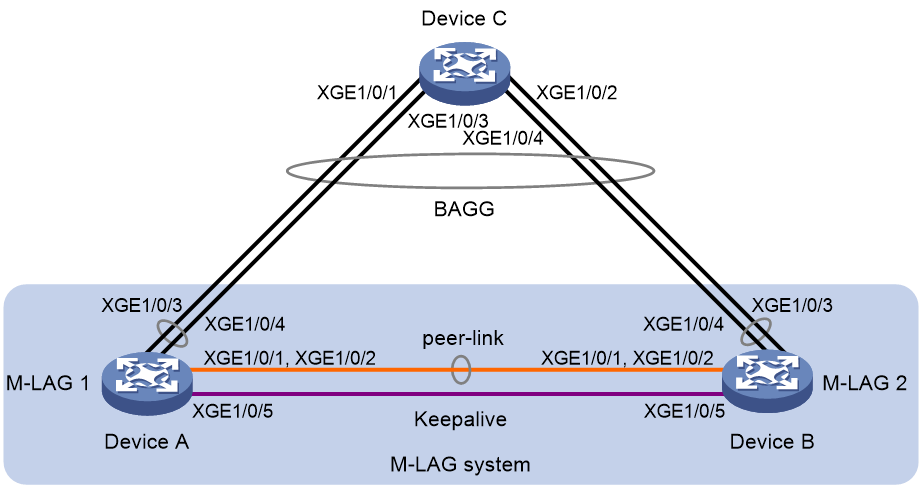 3、m-lag1,deviceA的3口和4口一定要做聚合口跟device C相连吗?可以只接一根线么?