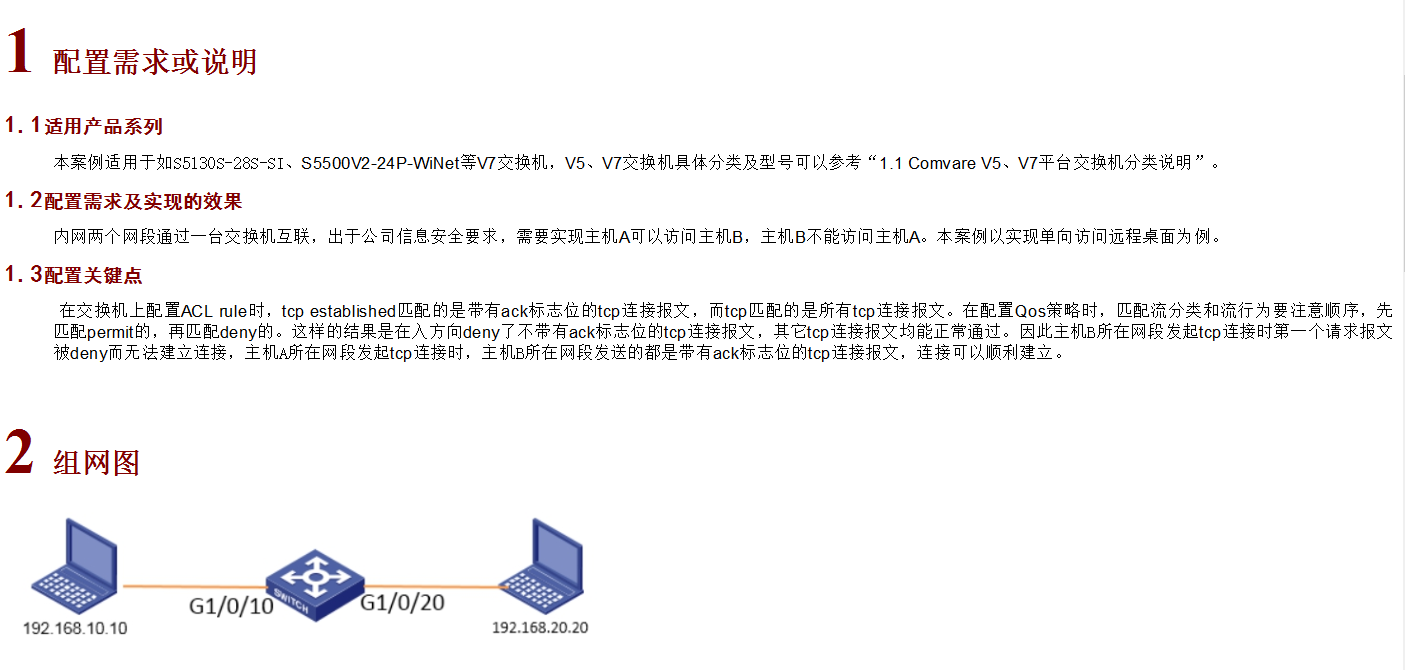 [H3C-acl-ipv4-adv-3200]rule 0 permit tcp source 192.168.20.0 0.0.0.255 destination 192.168.10.0 0.0.0.255