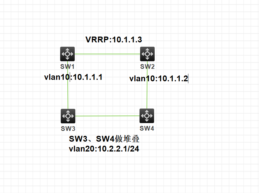 sw3、sw4做了堆叠,路由是有写好的,但是sw3上的10.2.2.1能通vlan10的10.1.1.1和10.1.1.2但是不通10.1.1.3的虚拟地址