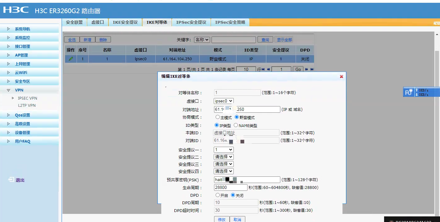 很明显啊,对端公网IP发生了变化,你 在一端 把公网IP改了就好了啊