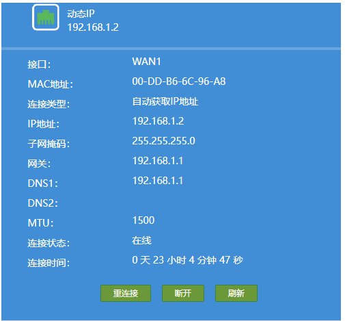 两个宽带的网关都是192.168.1.1,发现WAN2处于断开状态,估计是和这个有关系,请问如何设置?