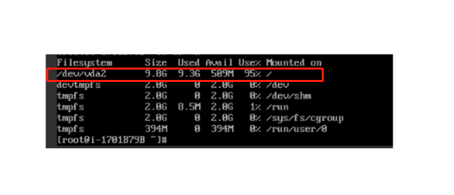 3、云平台分配10G空间给虚拟机(vda2),虚拟机对10G磁盘格式化时,没有加-o discard参数,存储空间占用正常,如下图: