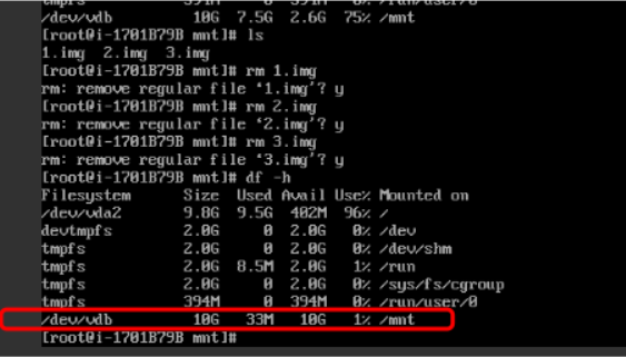 4、随后云平台继续分配10G空间给虚拟机(vdb),虚拟机对10G磁盘格式化时,加-o discard参数