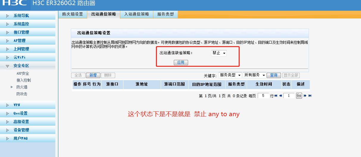 我的问题是 :如果是和禁止状态的时候,是不是相当于 默认这一条规则 禁止 any to any ,简单讲就是 当状态是禁止的时候,只有列表中允许 的才能进行互联网通讯。