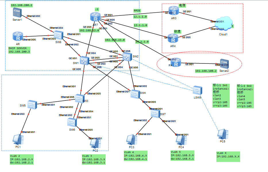 这配置是哪里问题哦,vlan 2 3 都能拼网关,vlan4 5 都拼不通。