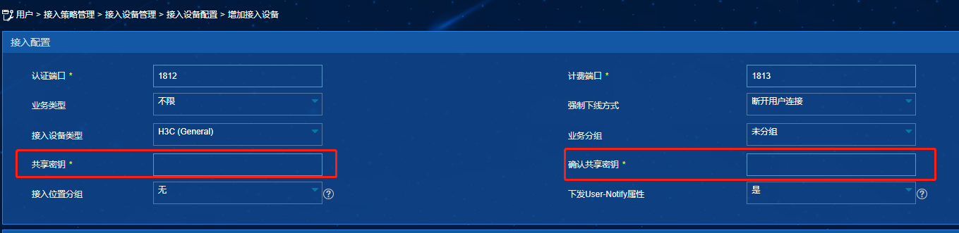 交换机上的radius的key authentication cipher 忘记了,能不能在iMC网管平台上查到,具体在哪?