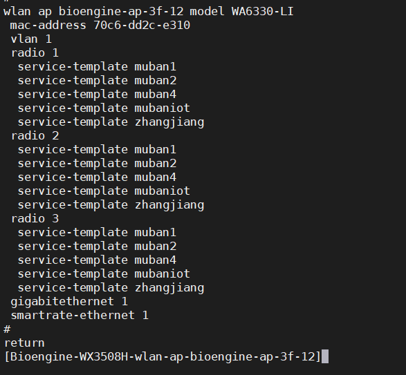 你的发的截图里面没有radio enable这个命令,你敲上之后查看配置的时候是可以看到的