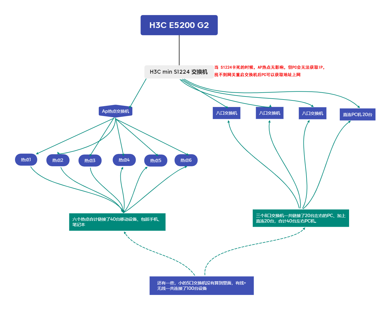 每隔两三天,晚上18:00左右,所有有线PC机,全部获取不到IP地址,找不到网关,AP热点的WIFI无影响,仍能正常上网,解决办法就是重启s1224交换机,有线可以获取到IP,正常上网,请教一下,这种情况有没有啥解决方案,以及出现这种情况的原因是啥?