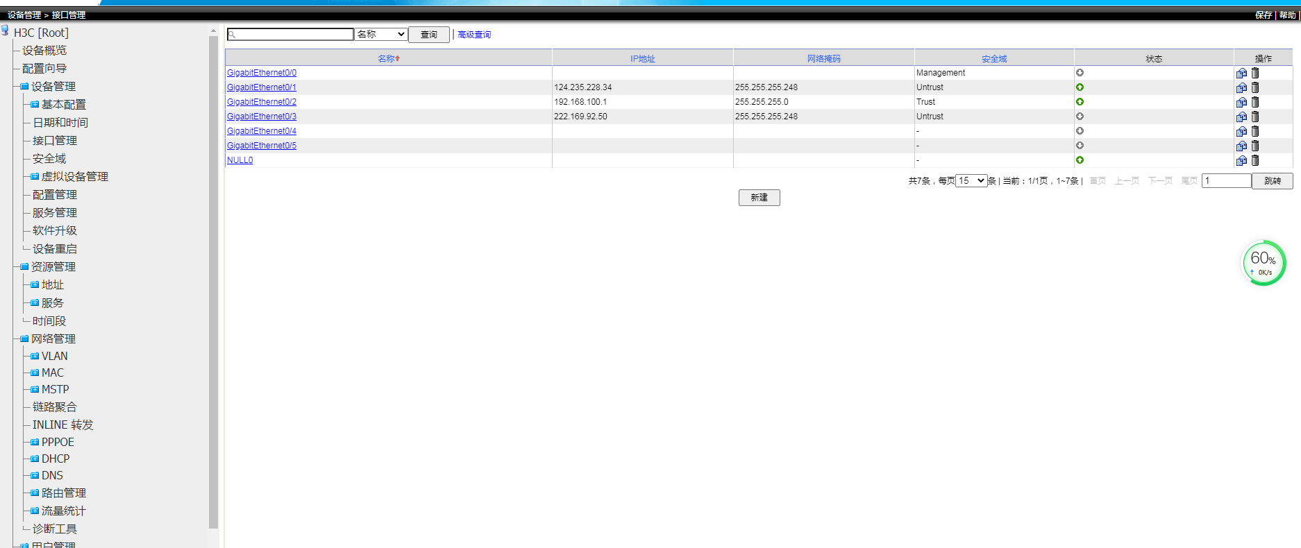 我的公司有一台SecPath F100-M-SI防火墙,我是一个新手企业it,想把这款设备配置上网当做最基础的路由器使用,因为以前的师傅已经操作设置好了,所以现在可以上网,最近公司需要增加一条专线,电信给了ip等信息,我照着之前师傅配置好的端口里的内容填,但是上不去网(1口是外网进入,2口是内网,我需要配置3口作为第二条专线),请问我应该怎么办才好啊?之前我只会用简单一点的路由,这个原理完全不知道,为什么在3口我明明填了电信给的ip信息却不行呢,2口就是内网啊,线路接的保证对,我知道这个问对你们来说很弱智,麻烦大神给讲讲web页面应该怎么操作,或者给一个可以自学的教程什么的,谢谢了。图里3口不亮是因为我设置这些之后,插上公司就断网,我就给拔了