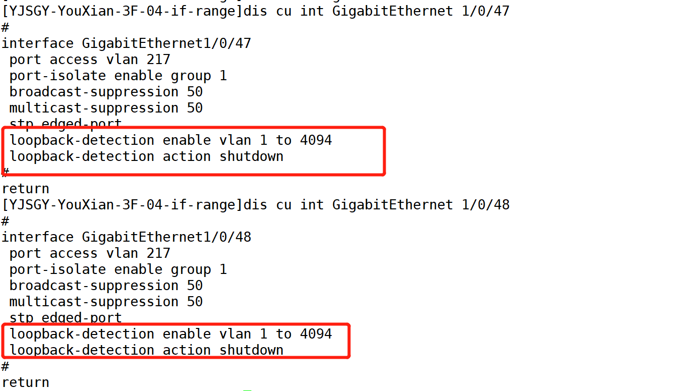 为什么47、48故意接环路也不提示呢,交换机接口也不做shutdownc处理,这是什么原因呢?