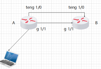 拓扑如上图, PC通过A 转到B实现上网。PC网关在A,所有网段流量都在teng 1/0 这条路径上。