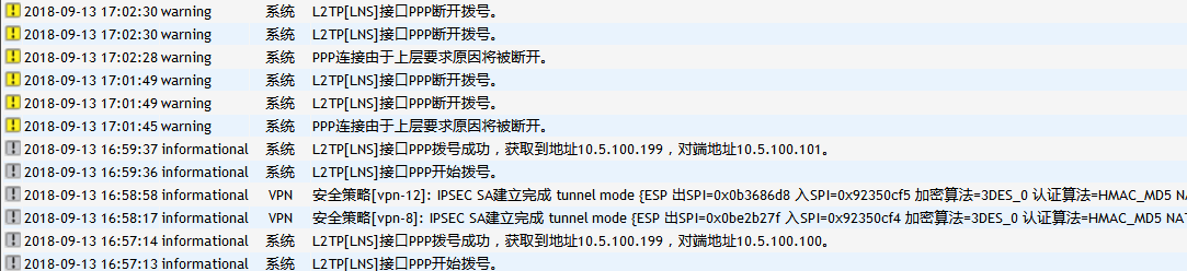 在系统日志中一直出现这样的提示,VPN总是断断续续的,重启设备后就正常了,但过段时间又有问题