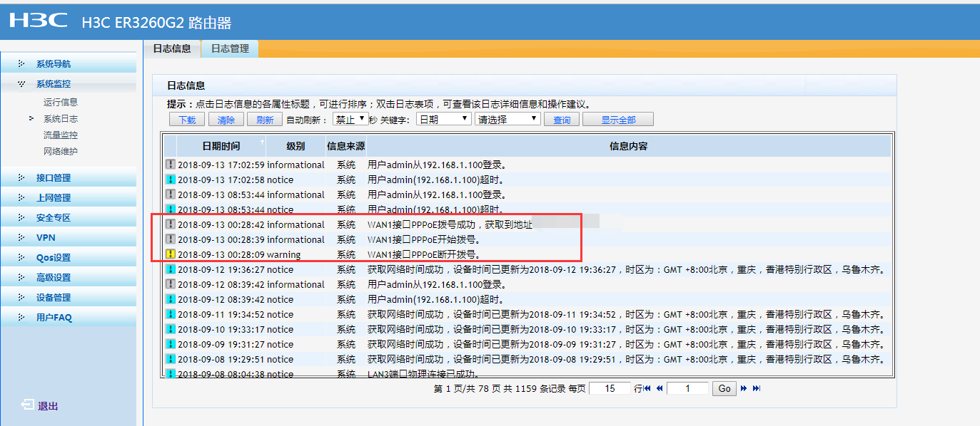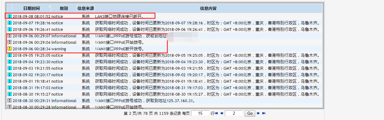 各位老师好,公司使用的ADSL网络,我发现最近在企业路由器,日志里面显示时不时的有PPPOE断开之后又连接的(还有不同的LAN口断开之后连接的),有的时候在办公时候,但是使用上网没有感觉的,麻烦请各位老师看下指导下的,这个是正常情况的么?怎么解决的么?谢谢各位老师,感谢