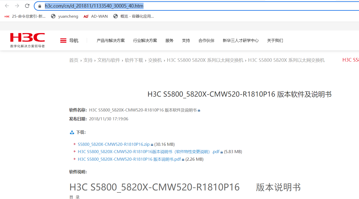 H3C S5800_5820X-CMW520-R1810P16 版本软件及说明书