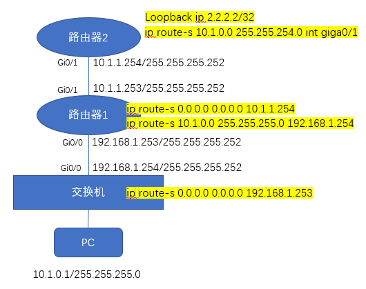 补充下:交换机有10.1.0.0的网关10.1.0.254,pc的网关就是10.1.0.254