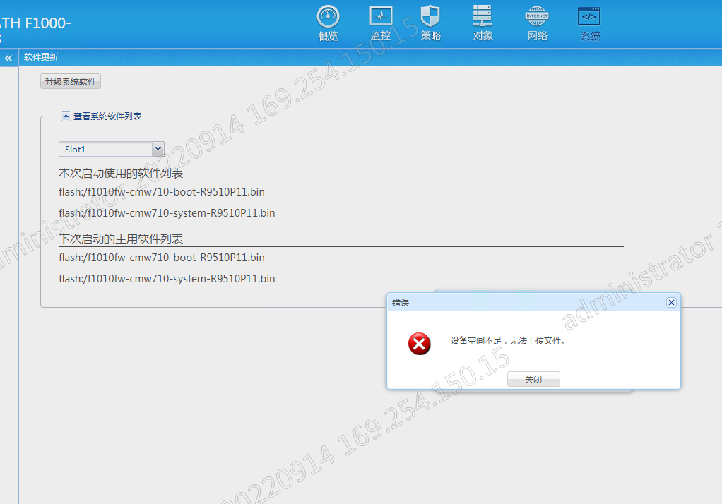 F1000-X-G2/F100-X-G2系列防火墙升级时提示内存不足升级方法