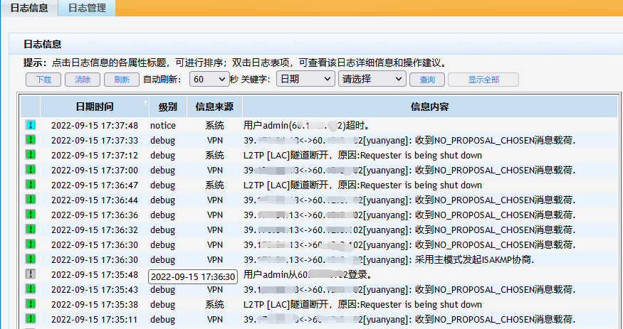 这时l2tp断开日志