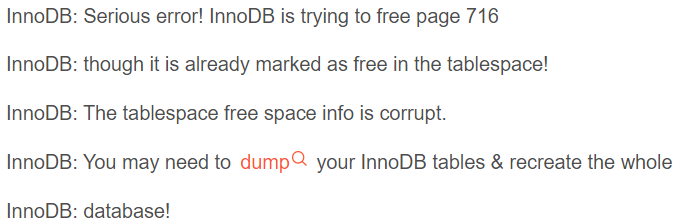 通过查看mysql的error.log,发现是数据库的数据崩了,现场没有拍报错照片,但是大概错误内容如下图: