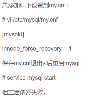 再去my.cnf注释掉添加的配置,重启数据库,成功!!