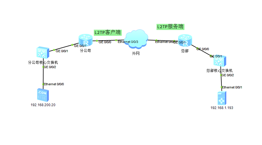 现在就是交换机不能和总部服务器通信,总部和分公司两端路由器是可以通信的。