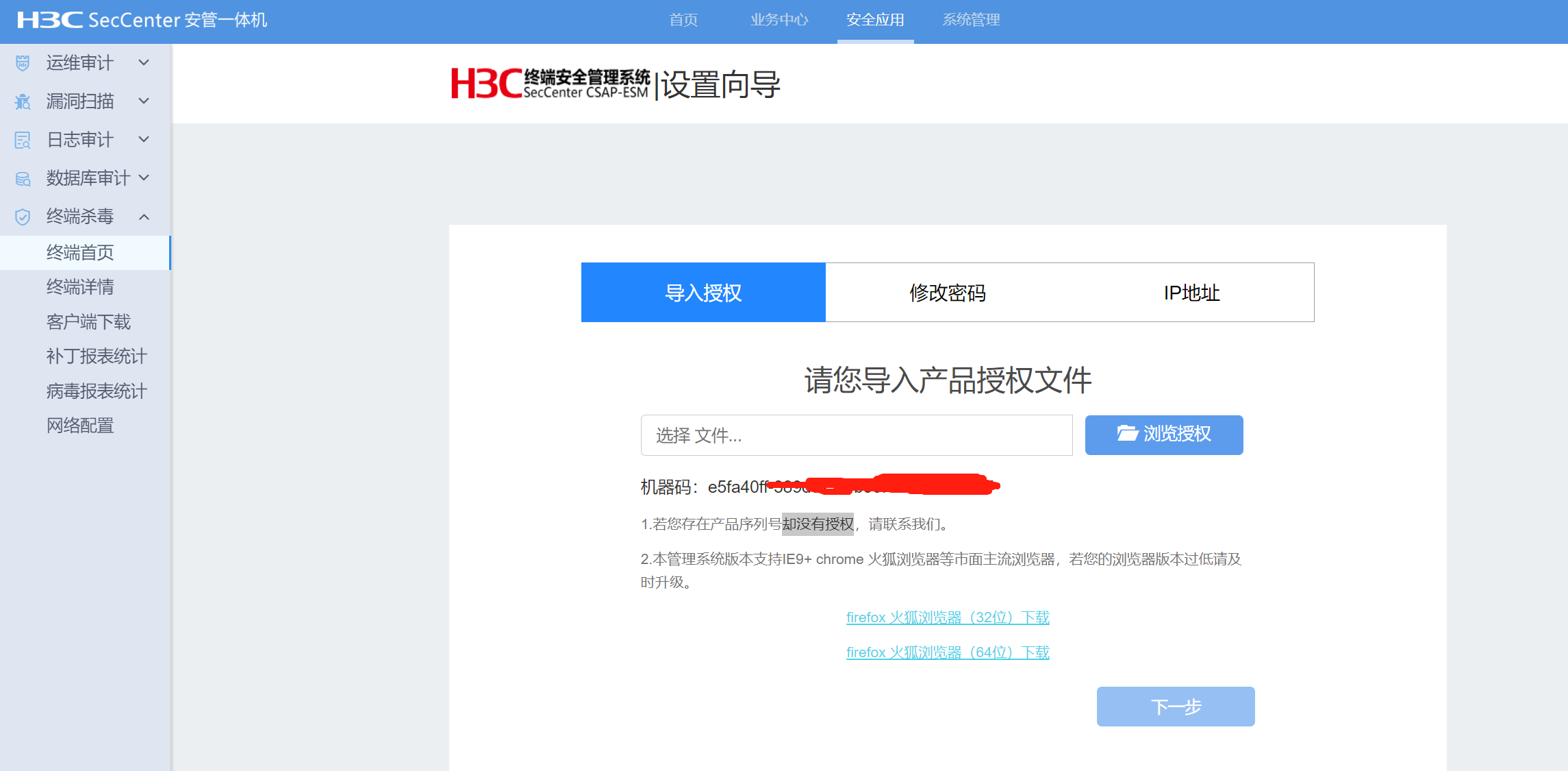安管一体机,终端杀毒首次激活,没看到SN码,只有机器码,如何激活授权