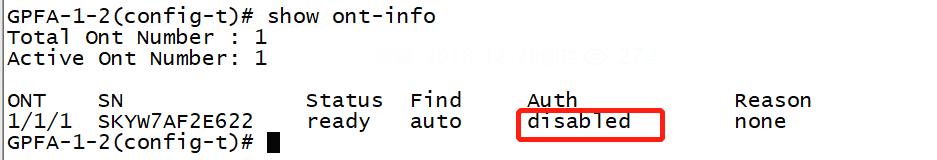 OLT设备P3500 onu设备auth为disable是为什么,对ONU设备注册有影响吗