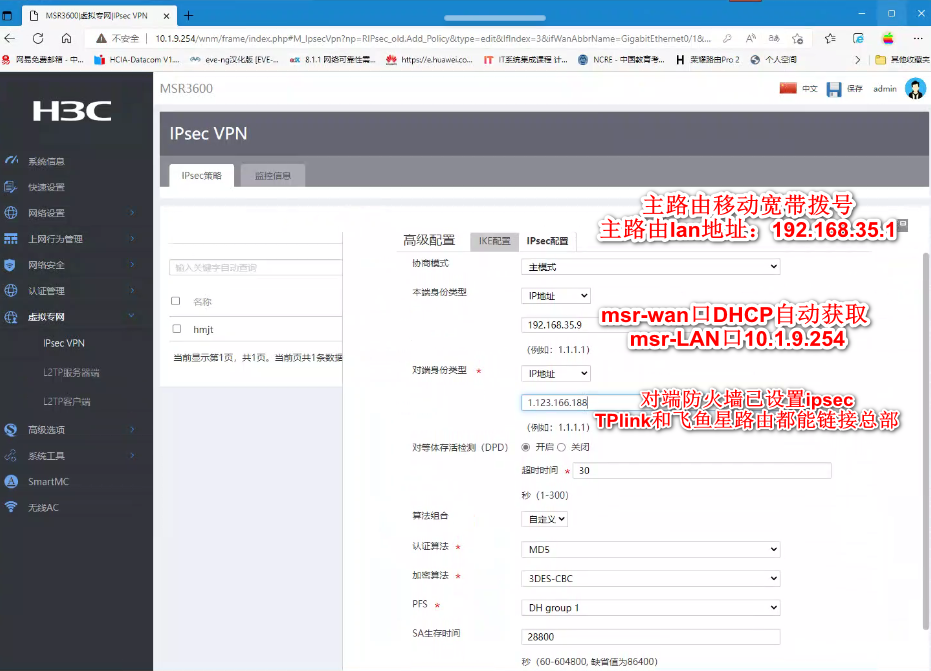 msr ipsec链接不上总部