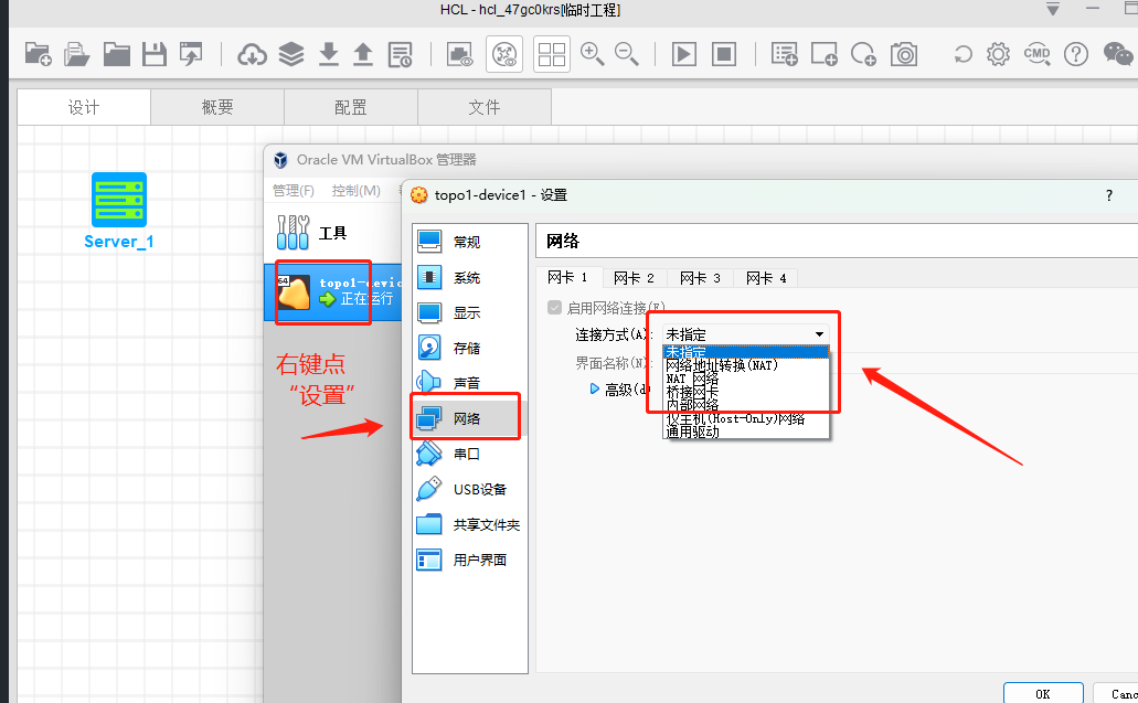 这个我知道,我给你找个图你就明白了,这个确实也困扰了我一段时间,因为打开bios cpu虚拟化,还是打不开server。后来发现拖放完sever,virtual box里面这个server虚拟机的网卡是有问题的,要在设置里改成别的模式,它默认的这个“仅主机”模式不行。换成我红框里其他的类型就可以开机了,