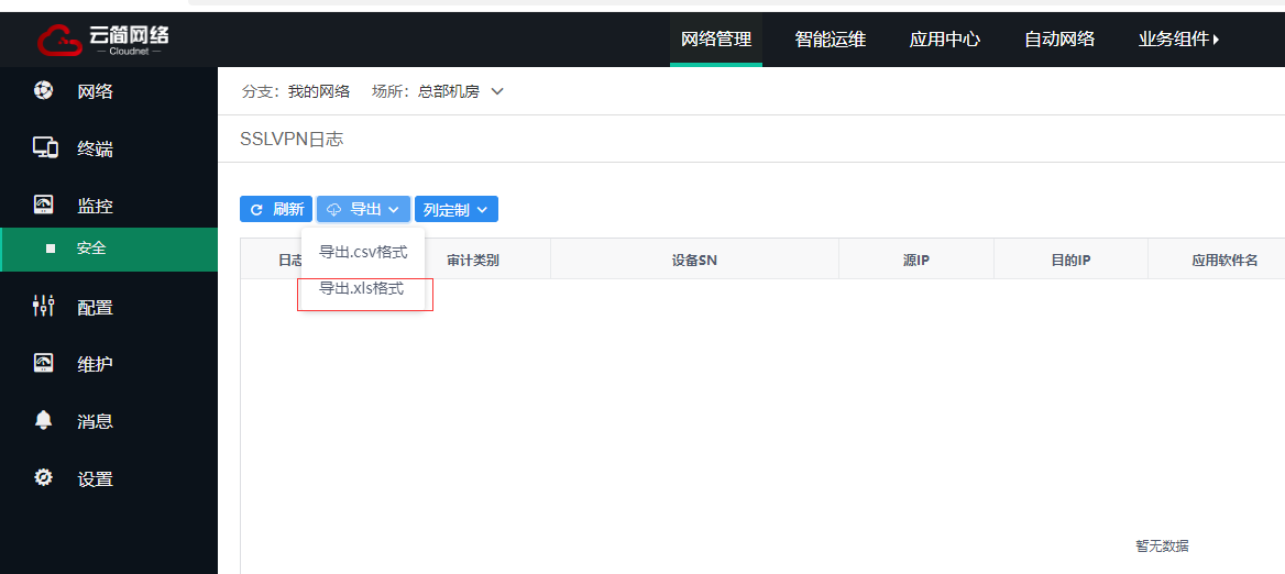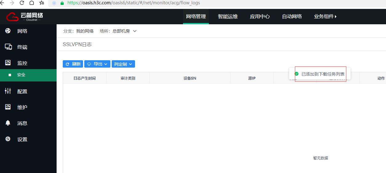 请问云简网络下载任务列表在哪里?监控-安全里面日志导出提示已添加到下载任务列表,但是任务列表在哪里?找不到!