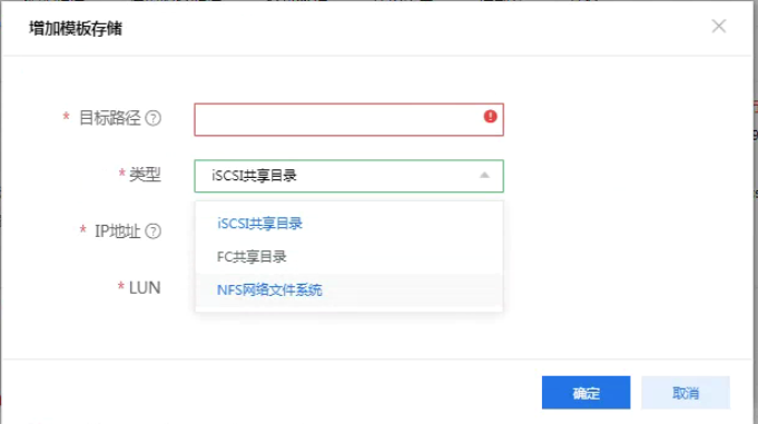 730P06版本双机热备环境下制作模板虚拟机必须配置模板存储吗?我现在没有配置模板存储转换虚拟机成模板时必须要我选模板存储,我点增加模板存储他只有FC、iSCSI、nas这三个类型的模板存储。