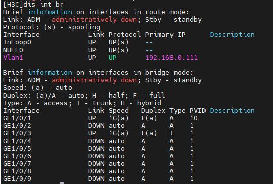 S5120下联主机(vlan10),上联核心(默认vlanif1)trunk 放通vlan10