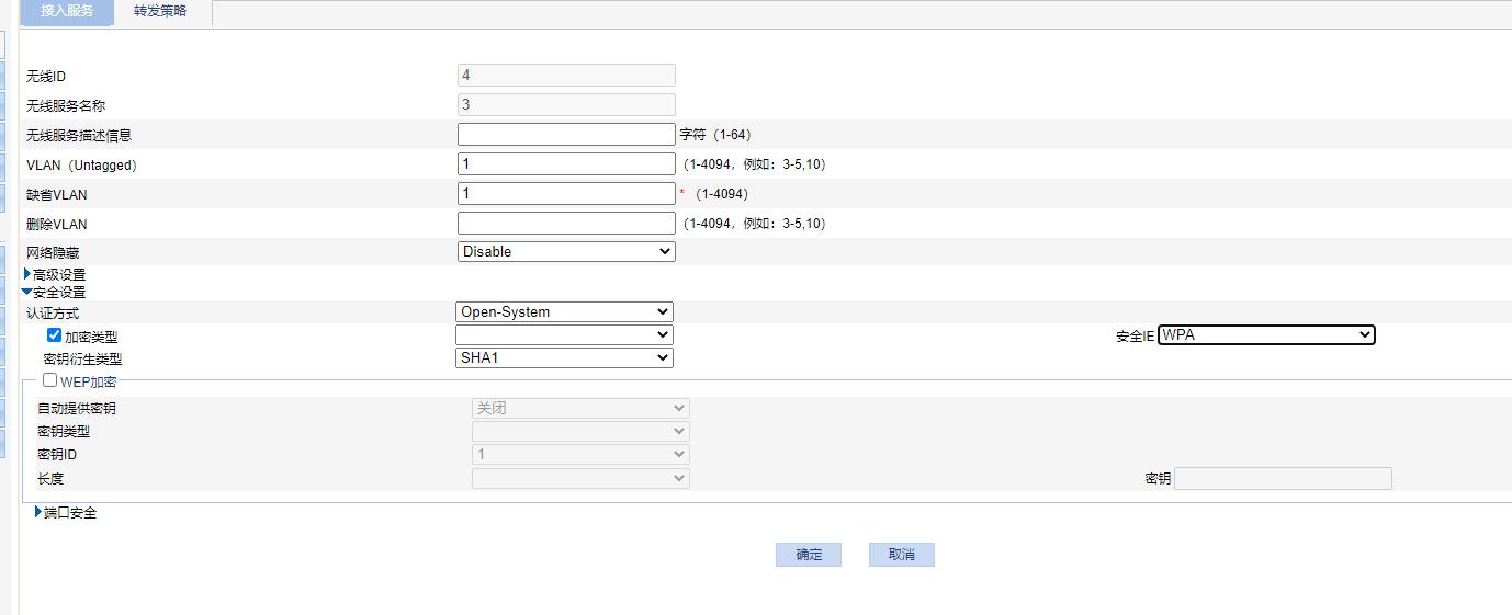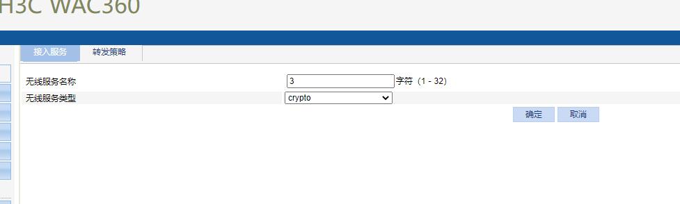 首先:选择“无线服务”>“接入服务”>“新建”。“服务名称”为test,“服务类型”为crypto。