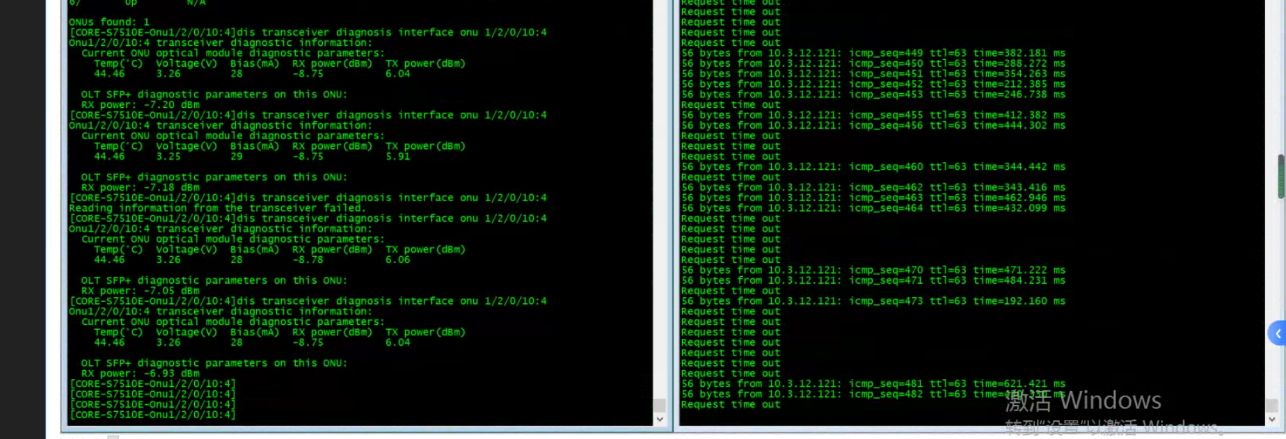 单台onu下的终端一直丢包,测试重启onu后,头10几秒ping是正常的,后面有开始频繁丢包,这个epon网络运行几个月了没动过,突然这个,要怎么排查